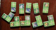 Ezek itt a bővítménylapkák, ezekkel bővíted, igazából telíted a kolóniádat. Minden fordulóban 5 kicsi, és 5 nagyobb lapka érhető el, ezekből lehet vásárolni. következő fordulóban aztán 5-5 új kerül elő. A kicsi 2 fa, a nagy 2 fa + 1 gabona kifizetésébe kerül. (Ahogy bővül (telik be) a kolóniád, úgy tudsz egyre több mindent aktiválni, egyre több erőforráshoz jutni.)